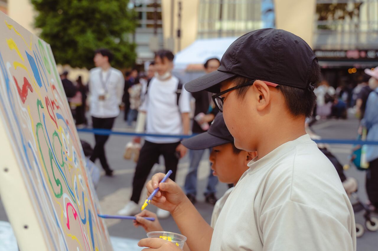 IKEBUKURO LIVING LOOP内で開催された、Kids = Artists 〜すべてのキッズはアーティスト〜にて子どもと一緒に制作。