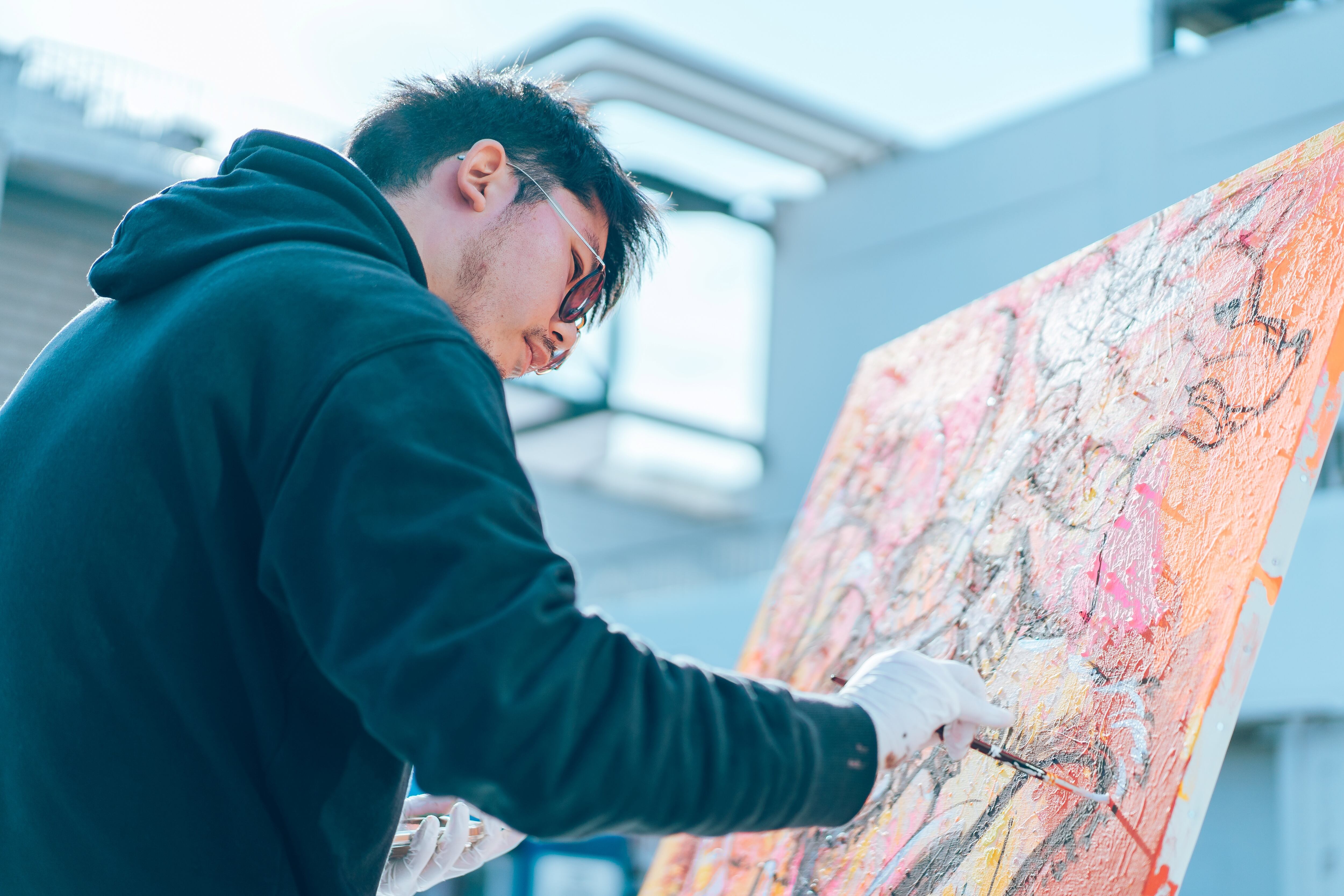 壁画制作やライブペインティングを中心に活動。 油彩によるアートワークも展開している。