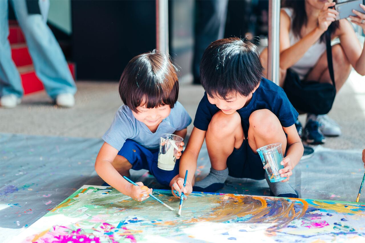 IKEBUKURO LIVING LOOP内で開催された、Kids = Artists 〜すべてのキッズはアーティスト〜にて子どもと一緒に制作。
