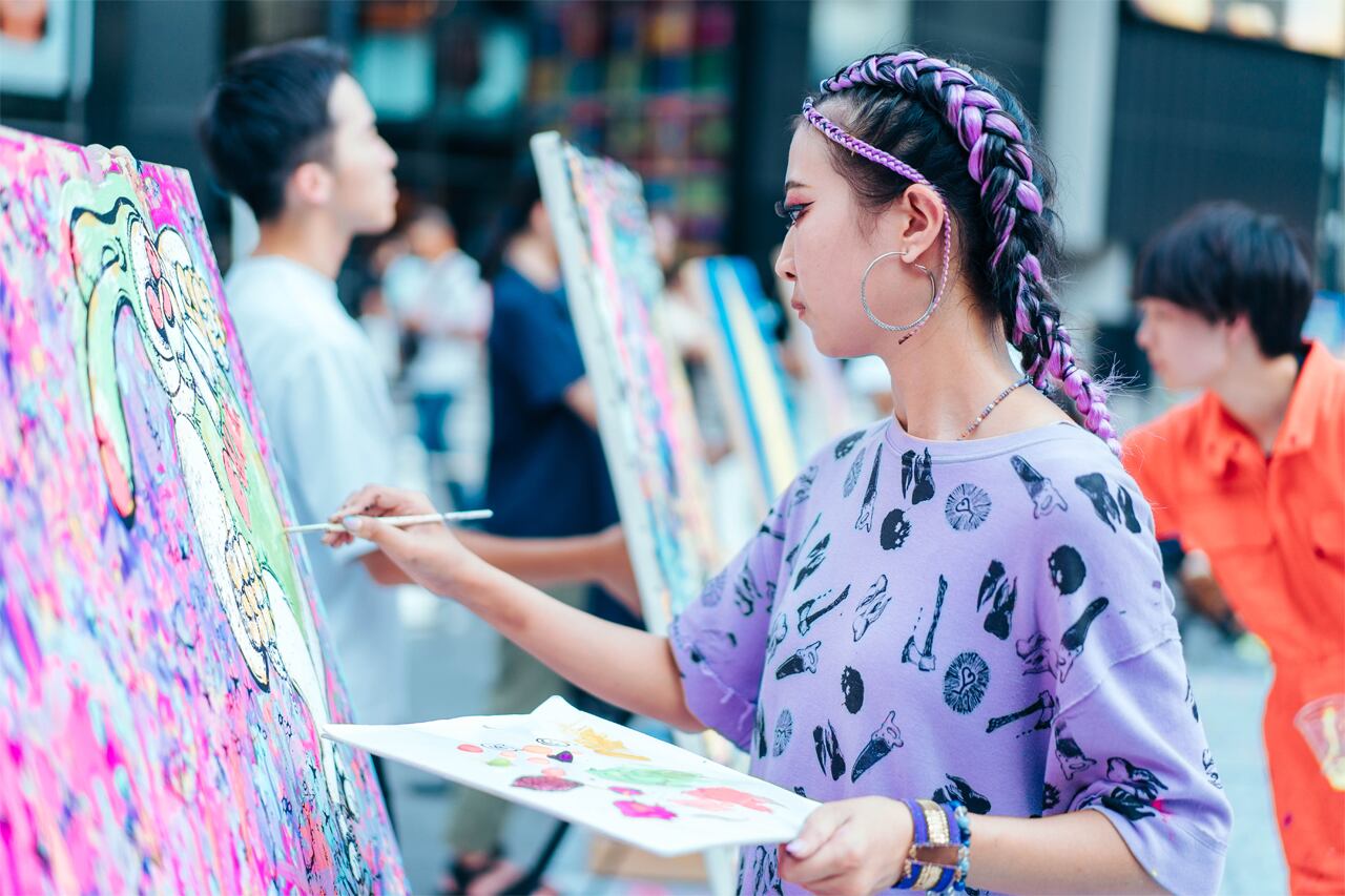 IKEBUKURO LIVING LOOP内で開催された、Kids = Artists 〜すべてのキッズはアーティスト〜にて子どもと一緒に制作。