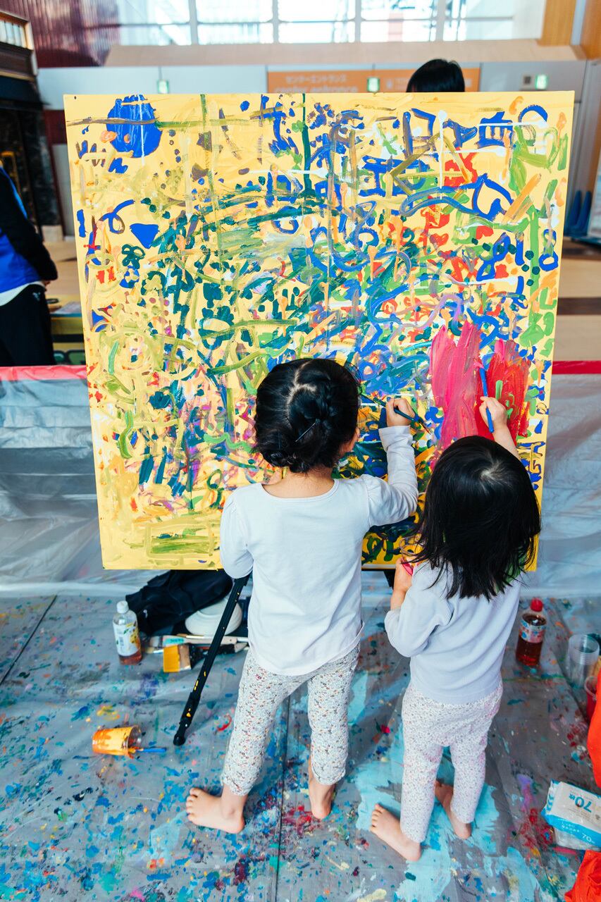 IKEBUKURO LIVING LOOP内で開催された、Kids = Artists 〜すべてのキッズはアーティスト〜にて子どもと一緒に制作。