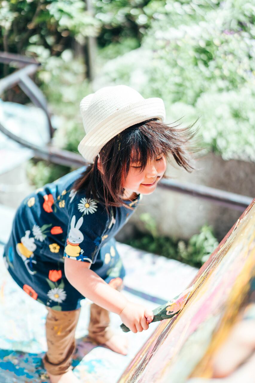 IKEBUKURO LIVING LOOP内で開催された、Kids = Artists 〜すべてのキッズはアーティスト〜にて子どもと一緒に制作。