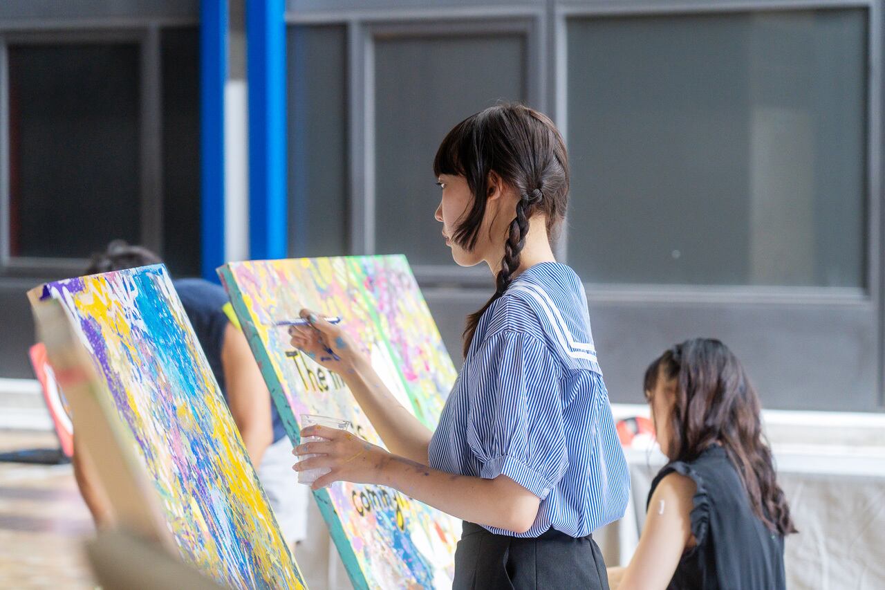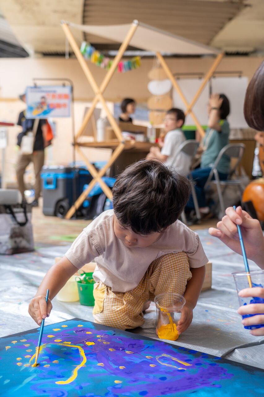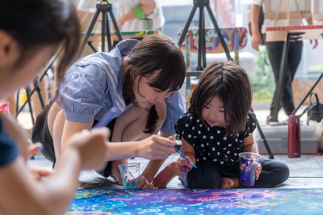 IKEBUKURO LIVING LOOP内で開催された、Kids = Artists 〜すべてのキッズはアーティスト〜にて子どもと一緒に制作。