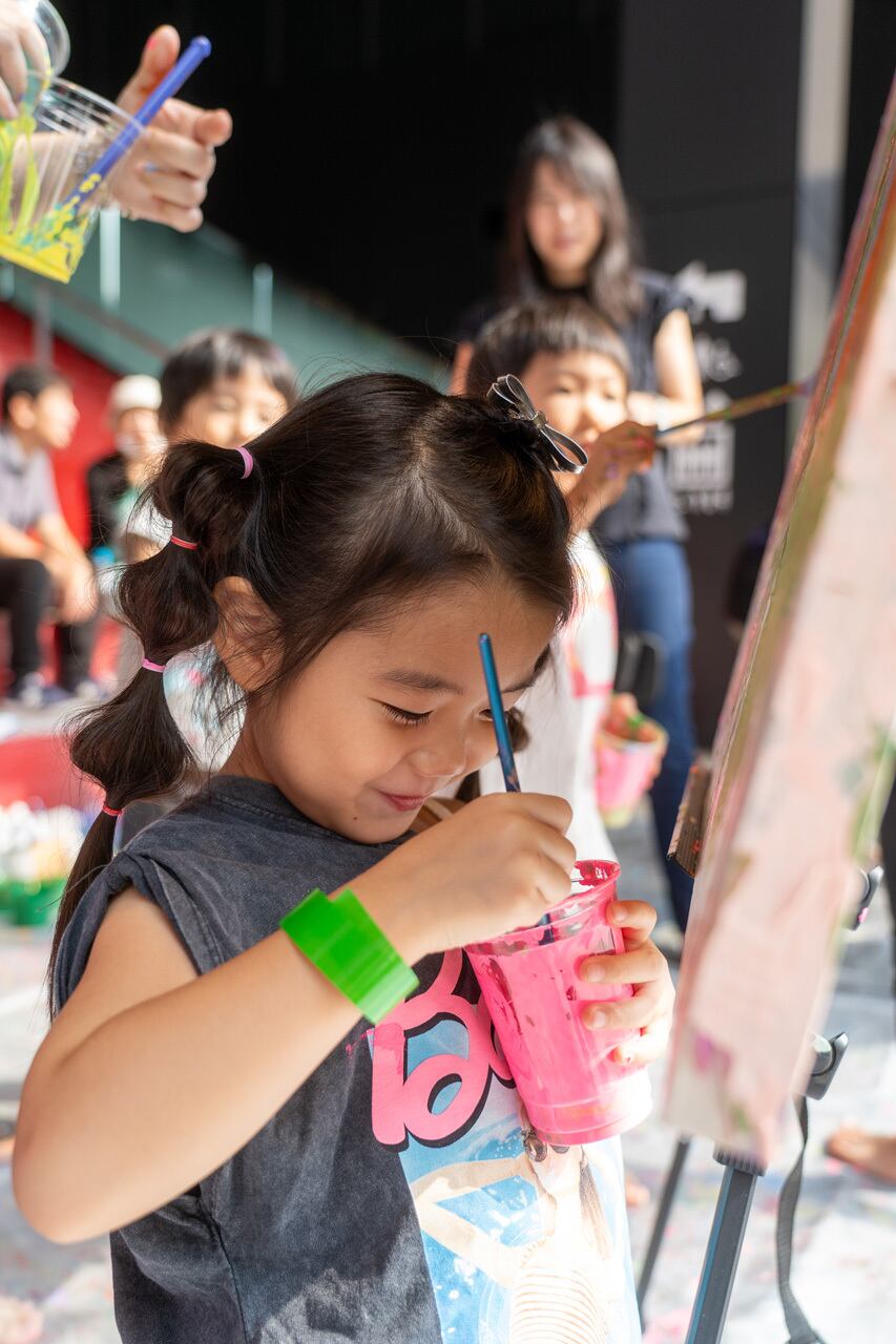 IKEBUKURO LIVING LOOP内で開催された、Kids = Artists 〜すべてのキッズはアーティスト〜にて子どもと一緒に制作。