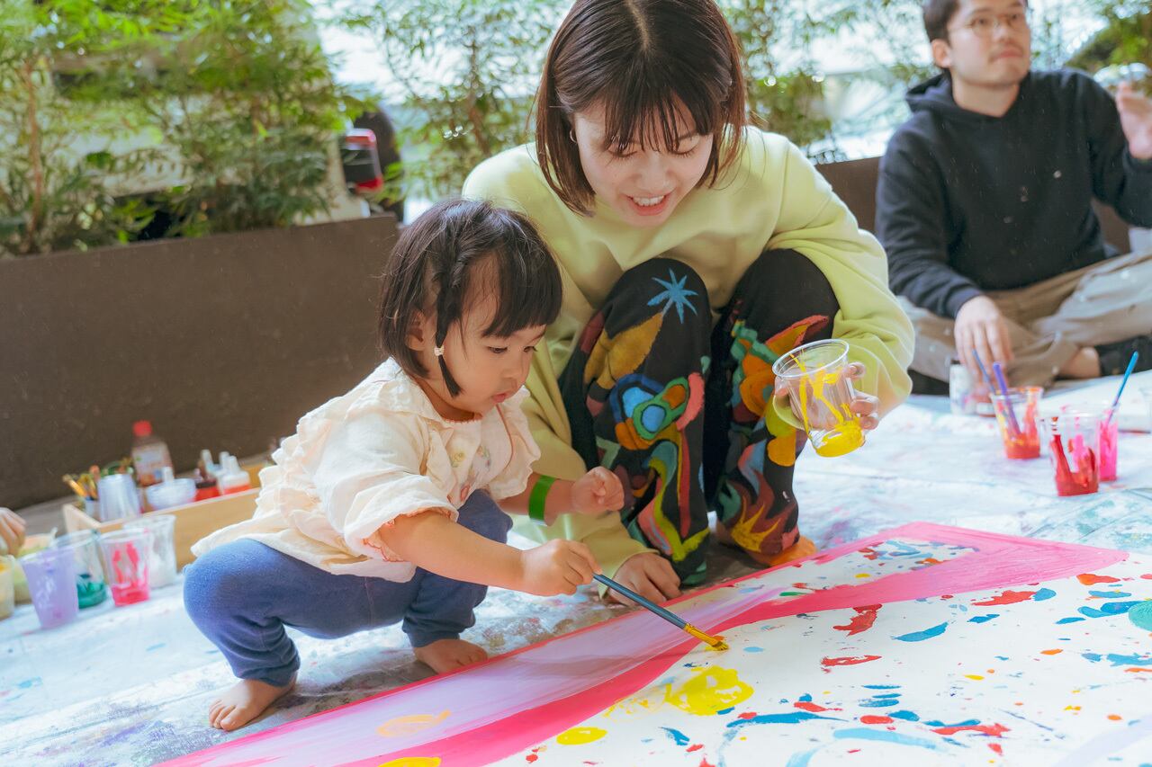 IKEBUKURO LIVING LOOP内で開催された、Kids = Artists 〜すべてのキッズはアーティスト〜にて子どもと一緒に制作。