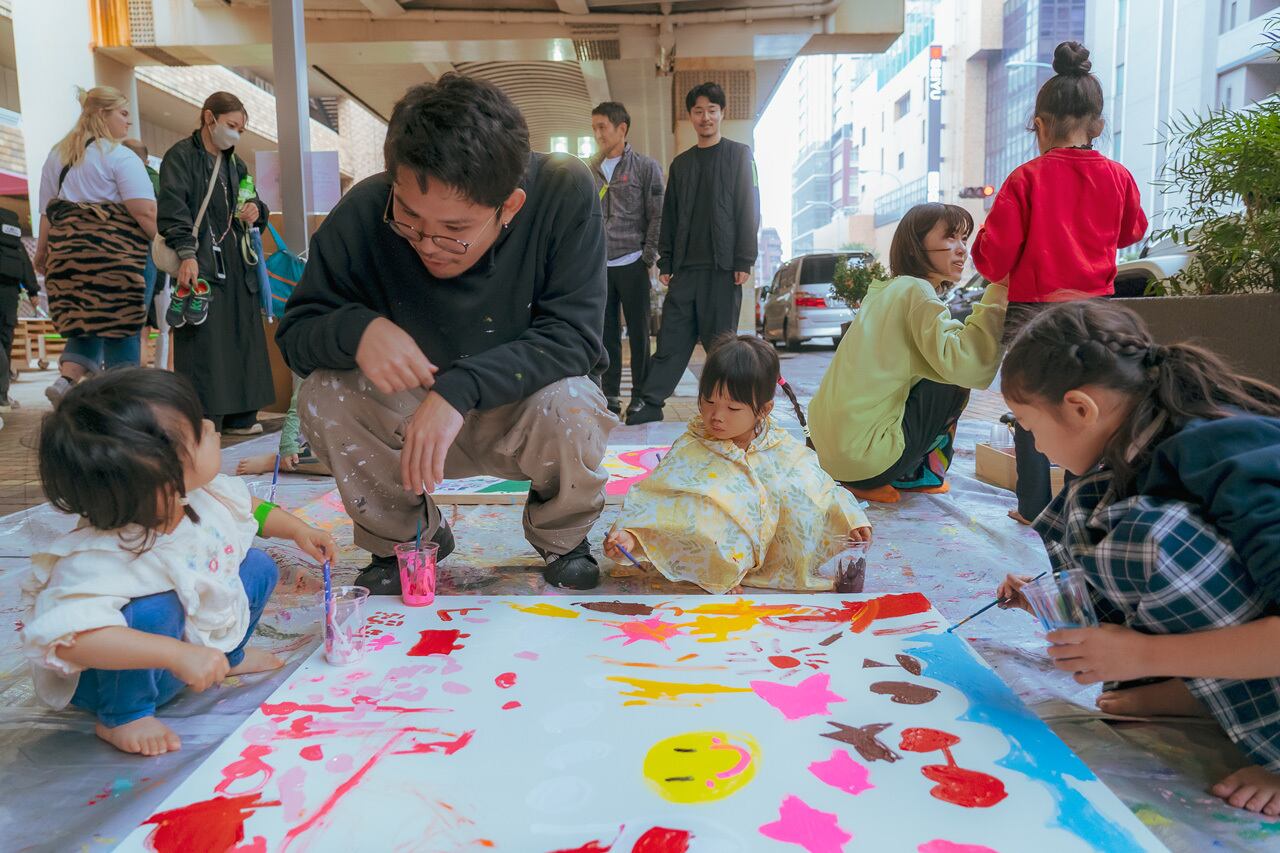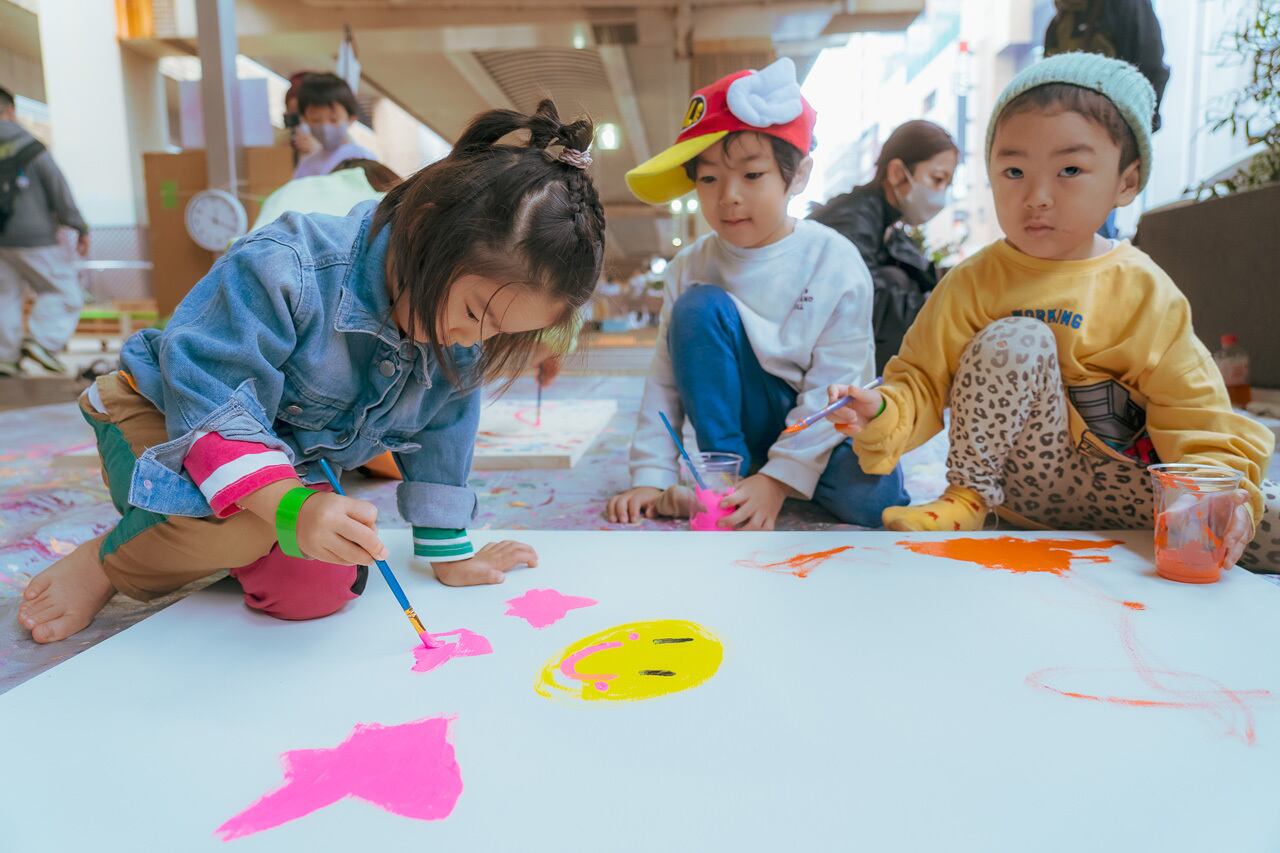 IKEBUKURO LIVING LOOP内で開催された、Kids = Artists 〜すべてのキッズはアーティスト〜にて子どもと一緒に制作。